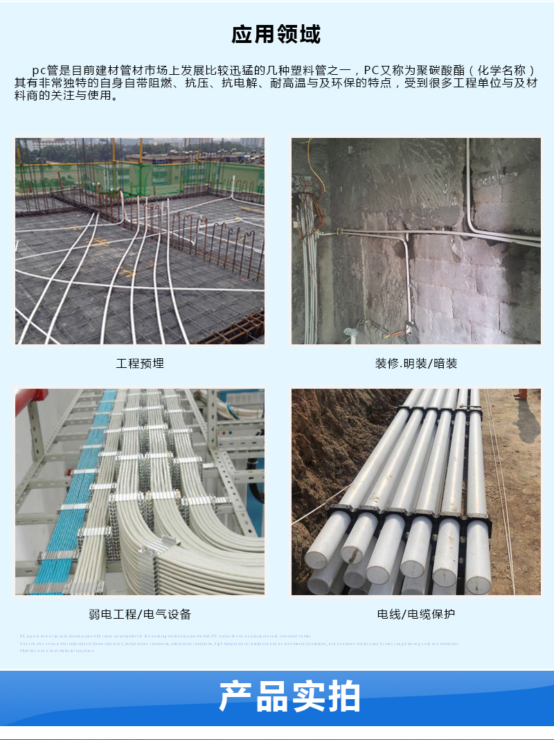 用途 | 工程预埋,电线电缆保护,埋地敷设,电气配管,PC电线管,PC穿线管 | ||