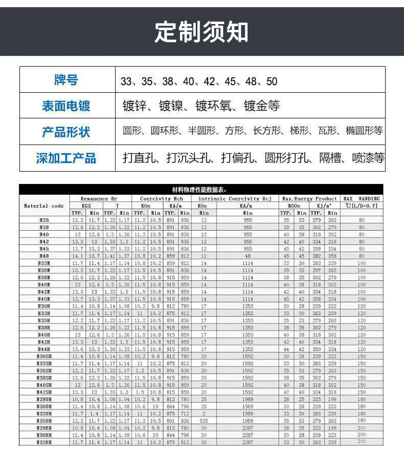 材料牌号 | 钕铁硼 | ||