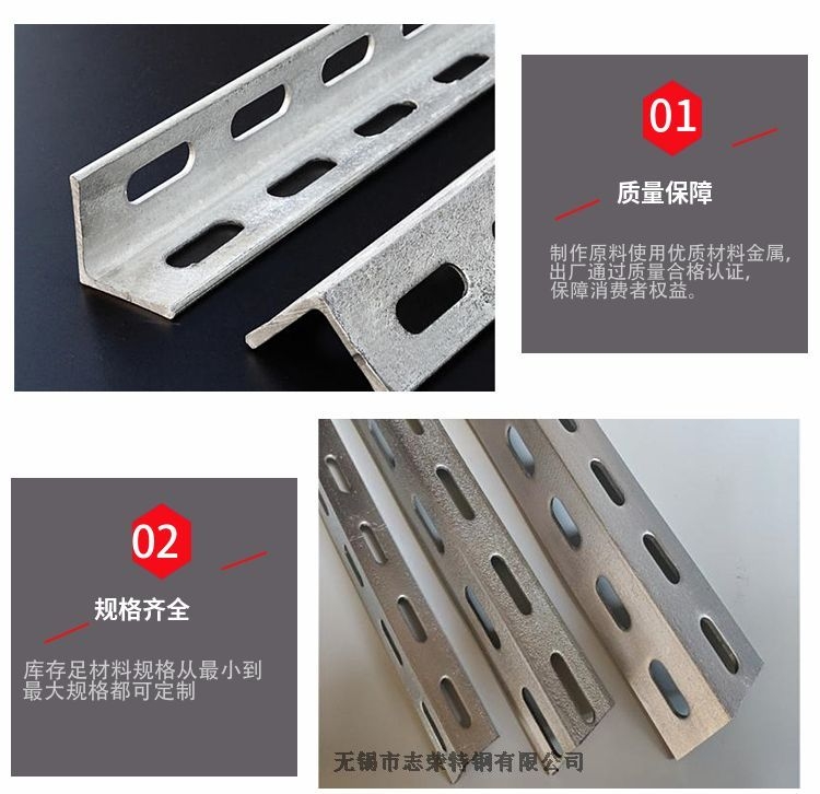 常规规格:各种长条型葫芦孔不等边角钢、仓储、货架、桥架支撑(量大可定制)。电厂、船厂专用角钢