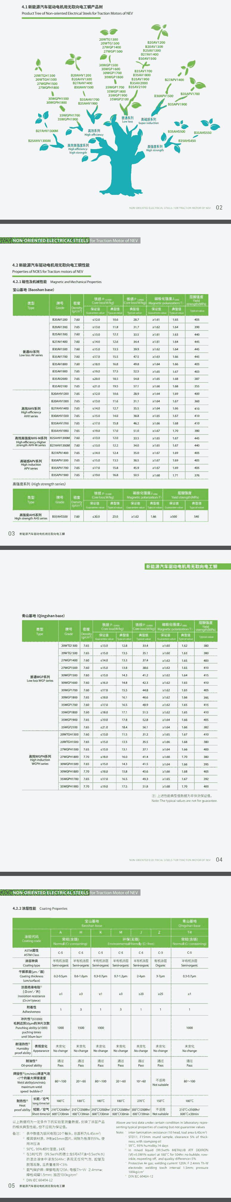 ●宝山基地新能源汽车用无取向电工钢B20AV1200 B20AV1300 B25AV1300 B27AV1400 B30AV1500 B35AV1700 B35AV1900 B35AV2000 B35AV2100 B20AHV1200 B20AHV1300 B27AHV1400 B30AHV1500 B35AHV1700 B35AHV1900 B25AHV1300M B27AHV1300M B27APV1400 B30APV1500 B35APV1700 B35APV1900 B35AHS500等牌号。