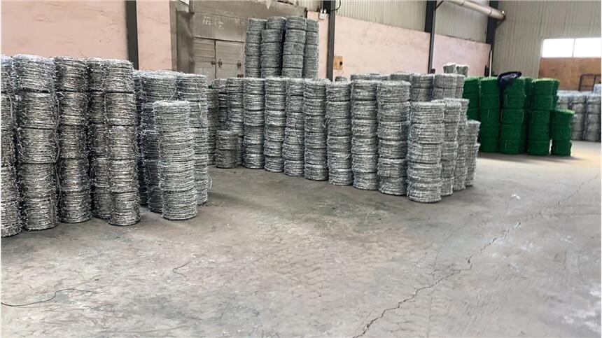 双股刺绳 钢丝刺绳 财润现货铁丝刺绳 一捆25kg蒺藜刺绳。表面处理工艺:电镀锌、热镀锌、涂塑、喷塑。有蓝、绿、黄等颜色。 用途: 用于草场边界、铁路、高速公路的隔离防护等。刺绳的三种拧编方法:正拧,反拧,正反拧。正拧法:就是将两根铁丝或者多根铁丝拧成双股铁丝绳然后再将刺绳缠绕在双股铁丝上。反拧法:就是先将刺丝缠绕在主丝(即是单根铁丝)上之后再加一个铁丝与之拧编合股成双股刺绳。正反拧法:就是自刺丝缠绕主铁丝的地方向相反的方向拧编。不是顺着一个方向拧编。