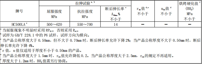 HC500LA力学性能