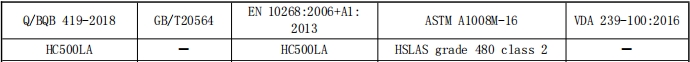 HC500LA国内外相关标准近似牌号对照表