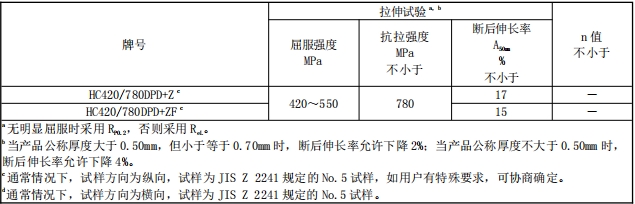 HC420/780DPD+Z力学性能