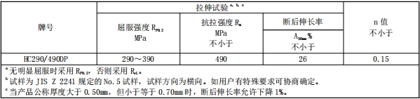 HC290/490DP力学性能