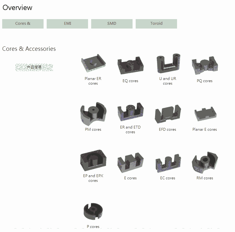 飞磁主要应用在电源转换、信号处理、电磁干扰抑制、模式识别等领域,涉及通信、消费电子、设备、汽车电子、家用电器、工业控制和仪器仪表等行业。飞磁提供全系列软磁铁氧体磁芯(锰锌和镍锌材质齐全),线圈骨架,及抑制EMI产品等包括:E型,EFD型,EP,MBH2,WBS,BDS,CMS,MLS,MLP,MLN,CSA,BAR,LP,EPX,EP,EC, PM,EI,PLT,EQ,ER,ETD,Frame&Bar,PH,P,ROD,TUB,PQ,RM,U,PM,及各种圆环(T,TX,TN)。 此外还代理其他产品:树林骨架、MAGNETICS铁硅铝、坡镆合金(Mpp)、高磁通等产品(CH),OKAYA安规电容等;自主投产LED灯珠产线。