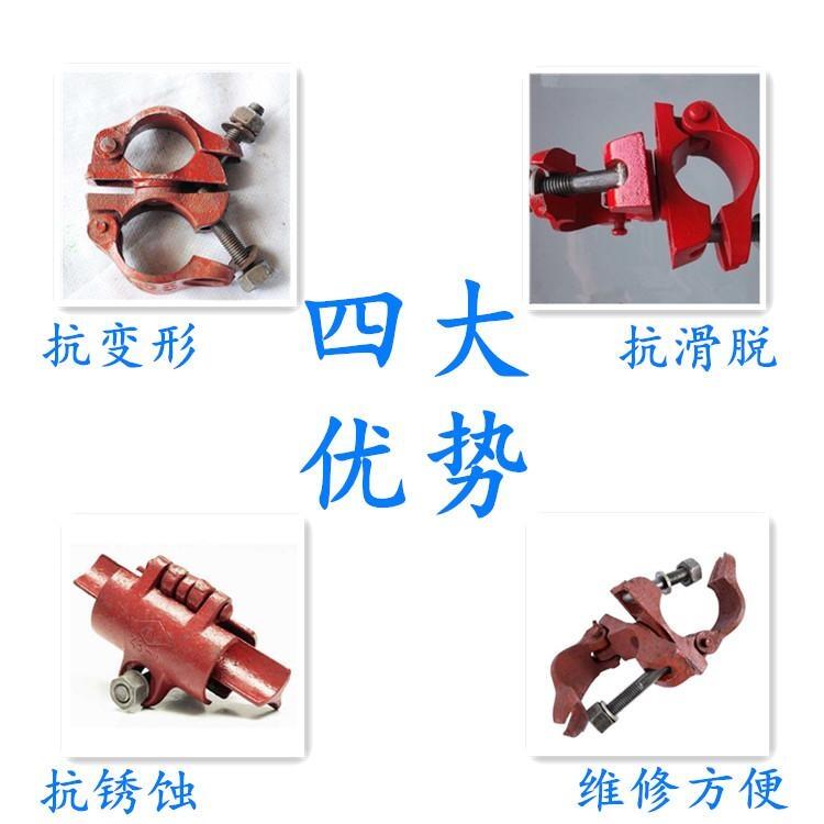 直角建筑扣件:用于两根垂直相交钢管的连接,它依靠的是扣件与钢管之间的摩擦力来传递荷载的。