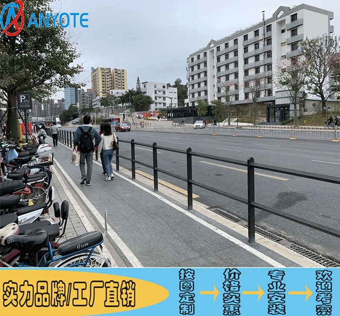 什么是道路隔离设施? 道路隔离设施是指:在道路范围内使用一些有形的结构性物体,强行分离不同行进方向或不同行驶速度、不同类型交通流的交通安全设施,主要包括有隔离墩、护栏、车辆障碍物、隔离带等。隔离墩主要用于隔离机动车和非机动车以及不同行进方向的机动车辆;护栏主要用于车辆和行人的隔离,一般设置在车行道与人行道分界处,或者设在道路中心,用于隔离上下行机动车辆,并有效防止行人、自行车不按规定横穿道路;车辆障碍物主要用于隔离墩、护栏的开口处,可以防止机动车违章通过或者掉头,防止骑车人骑着自行车突然横穿道路,迫使其下车推行;隔离带是隔离不同行进方向车辆、机动车与非 机动车的道路设施,一般种植松墙或路树,同时起到美化环境、减少眩光等作用。这些道路隔离设施,既是一种道路配套设施,同时也具有交通标线的含义和作用,并给可能违章的行人或车辆设置物体障碍。 什么是人行横道? 人行横道是横划在车行道上作行人横过车行道时的安全通道; 什么是过街设施? 过街设施是为了方便行人的通过,于行人密集或机动车高速行驶的路段设置于机动车道上方的空中安全通道。