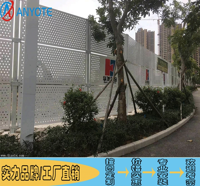 冲孔板具有良好的透风性也可以用于沿海台风防护。冲孔围挡其实是冲孔板,但是因为其使用的用途变化,可以将冲孔板打上一些孔,然后将其围起来,可以用于城市农村的改造,施工建筑围地圈地。冲孔围挡指为了将建设施工现场与外部环境隔离开来,使施工现场成为一个相对封闭的空间所采取的措施,包括采用各种砌体材料砌筑的围墙、采用各种成型板材构成的维护体等。防护冲孔围挡的施工标准:防护冲孔围挡基脚采用M10水泥砂浆砌筑MU10页岩砖砖砌0.5*0.5的基础,用于增强围挡抗风稳定性;镀锌板围挡设2.5米高,宽度2.52米为一套。施工围挡做美化处理,喷涂企业名称、、质量、文明施工用语及开发项目商业广告,严禁张贴、涂写垃圾广告。