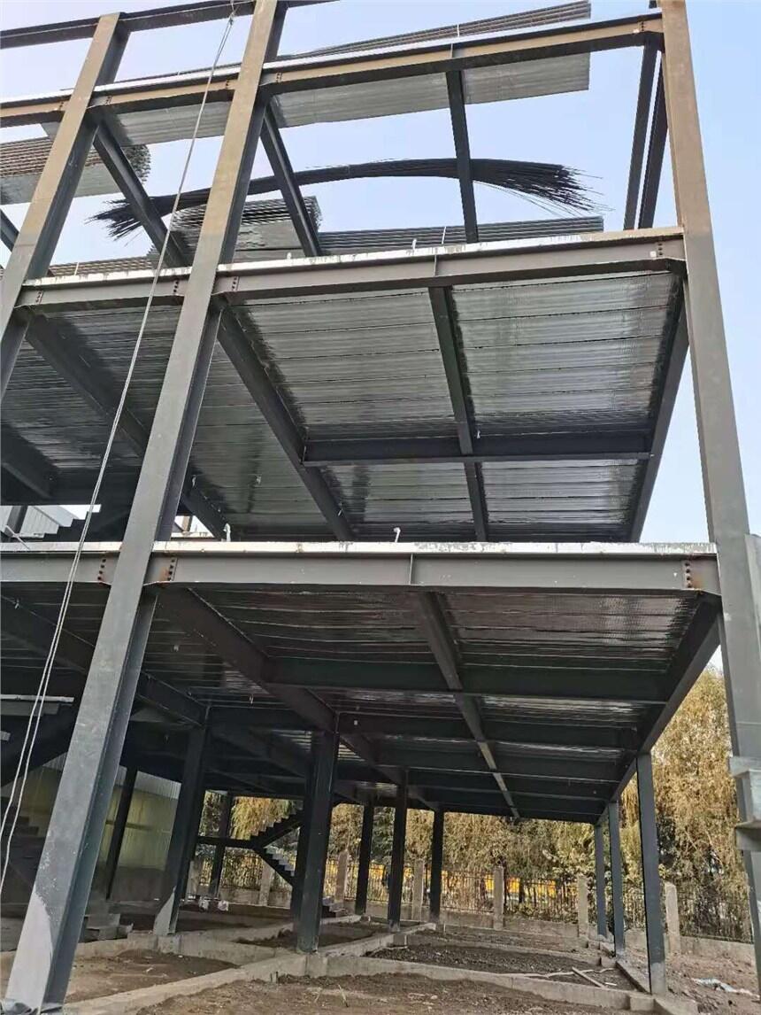 ? ? ? 我公司生产的钢筋桁架楼层板,是由一根上弦钢筋,2根下弦钢筋,2根腹杆钢筋,通过钢筋桁架楼层板生产设备,自动成型,自动焊接,自动剪切,加工成桁架筋。再把桁架筋通过高频电阻焊接在加工好的镀锌板上,使桁架筋和镀锌板成为一体的钢筋桁架楼层板。这种模板的作用就是把混凝土楼板里面的钢筋跟施工模板组合,形成一个在施工阶段能够承受湿混凝土自重的承重机构。钢筋桁架楼承板替代了大量的木模板、钢管脚手架支撑,减少了对环境资源的浪费。由于钢筋桁架模板采用自动化加工设备与制造工艺,实现了标准化、工厂化大规模生产,具有焊接质量稳定、钢筋分布均匀及产品尺寸准确等优势;采用机械化、工业化安装,改变了工人施工条件,有效确保施工质量。