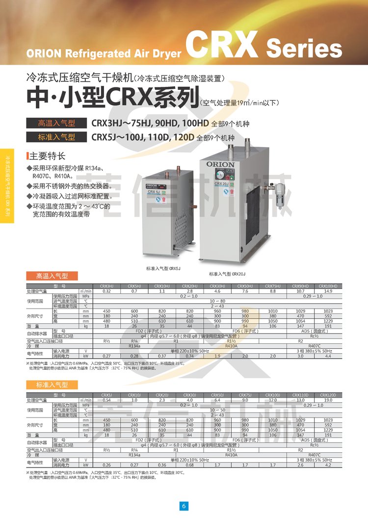供应日本ORION冷干机空压机后处理好利旺冷冻式干燥机CRX5HJ