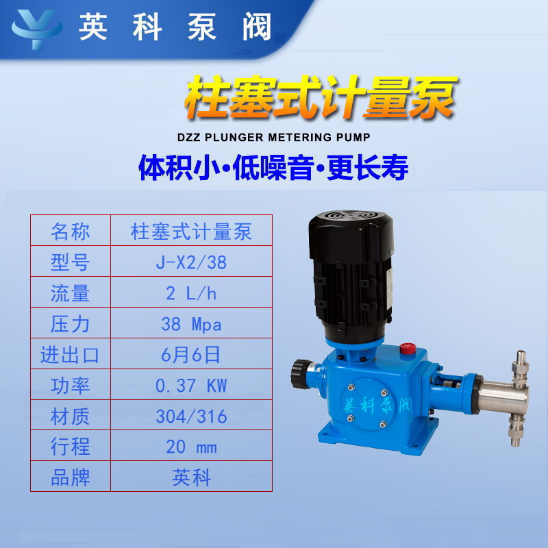 英科牌防爆316不锈钢柱塞式高精度耐腐蚀计量加药泵J-X2/38 是否进口 | 否 | ||