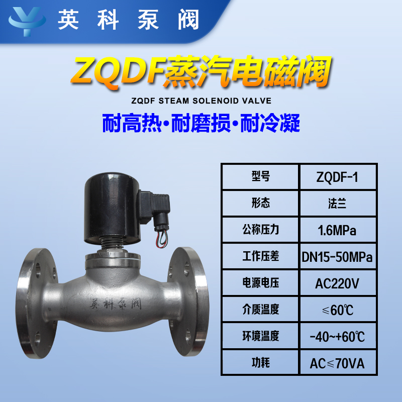 英科牌zqdf蒸汽电磁阀 法兰锅炉管道热水304不锈钢304DN50/PN16 型号 | ZQDF-1 | ||