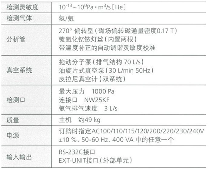 检测灵敏度 | 10E-13-10E0Pa.m3/s (He) | ||