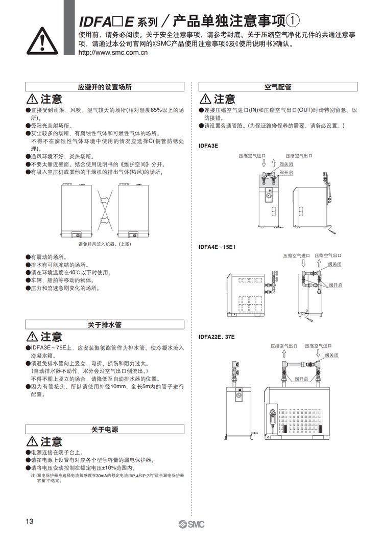 三坐标用 日本SMC冷冻式干燥机IDFA3E/4E/6E/8E/11E/15E1原装现货 品牌 | SMC | ||