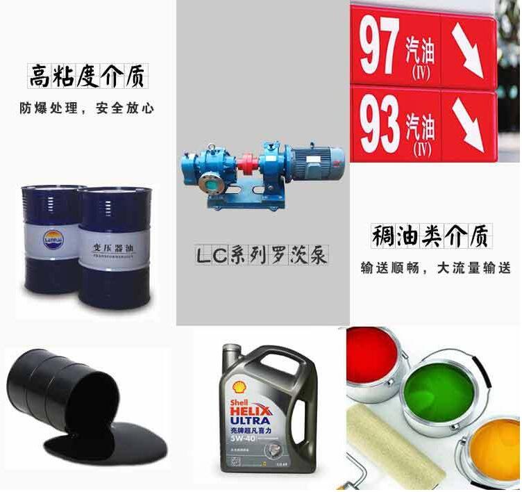 LC高粘度罗茨泵可广泛用于运送石油及石油产品(汽油可换铜泵叶)和工厂运送各种油类和液体。如原油、油漆、润滑油、玻璃胶、油脂酸、牙膏和淡碱性(肥皂加工)液体等;食物加工可运送各种液体,如豆浆、酵母、糖稀等。装卸各种油槽车及油轮等速度快、效率高、运用便利,能够正回转作业。