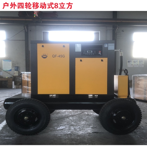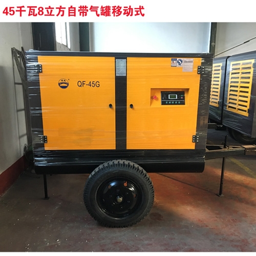 型号:QF-37G,驱动方式:直联,电机功率:37千瓦,排气量:6立方每分钟,工作压力:8-13公斤,外形尺寸:1750*1000*1470,重量:880公斤,分为普通工频、永磁变频两种,又分为固定式、移动式两种,固定式用于工厂车间统一供气、喷砂房防腐喷砂等,移动式为两轮带牵引,用于户外防腐工程喷砂除锈,使用方便。