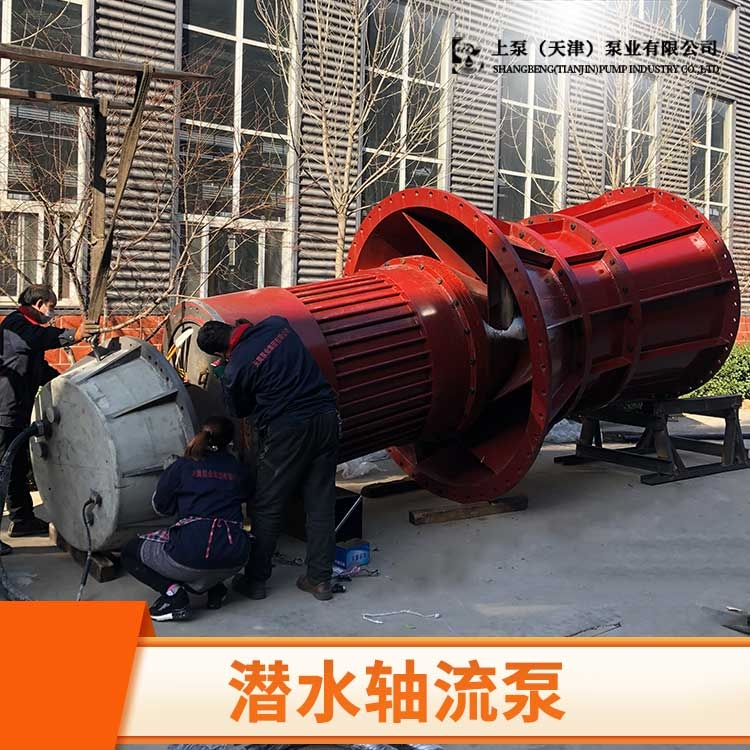 潜水轴流泵:驱动水泵的电动机是干式全封闭潜水三相异步电动机,可以长期浸入水中运行,具有传统机组一系列无可比拟的优点。