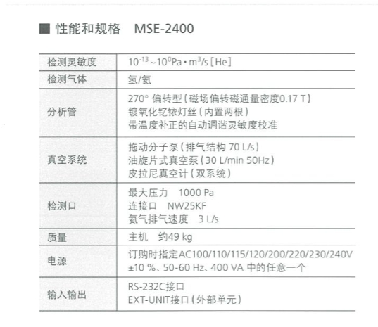 . 精度实验全压力区域检测口氦气排气速度 3L/分钟,实现高速测定时间稳定性。