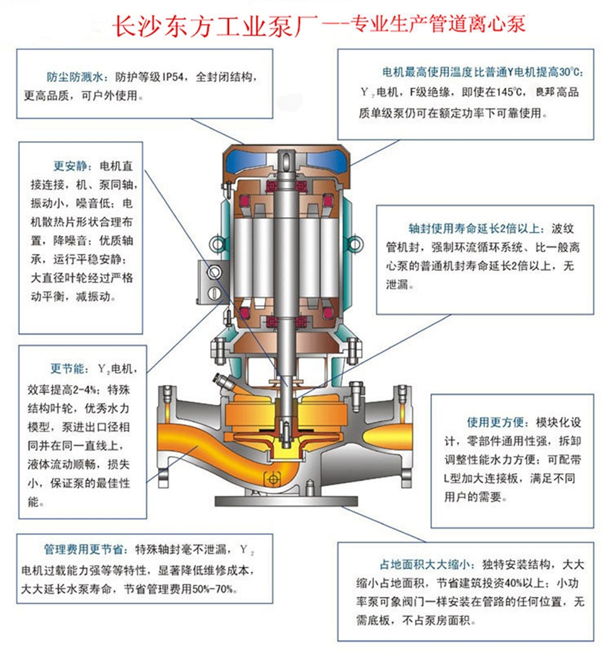 工厂管道泵的通常结构由六部分组成:叶轮、泵体、泵轴、轴承、密封圈和填料函,