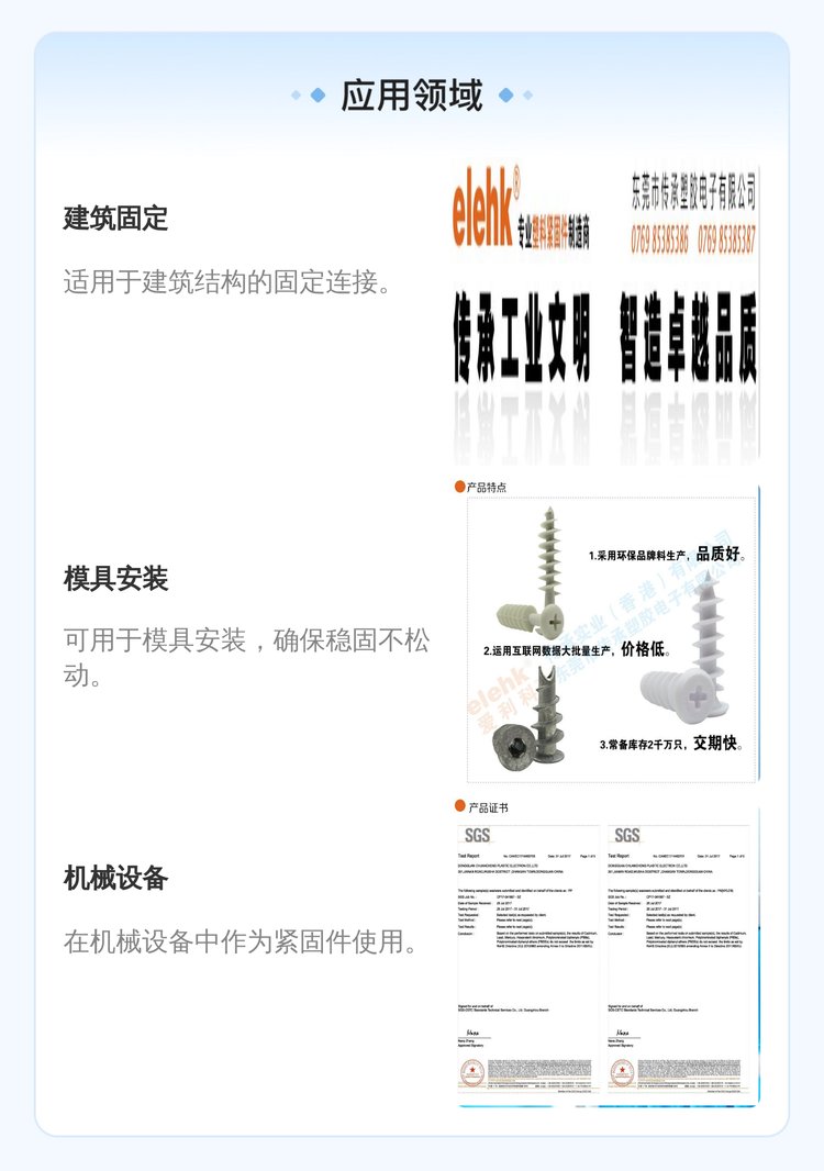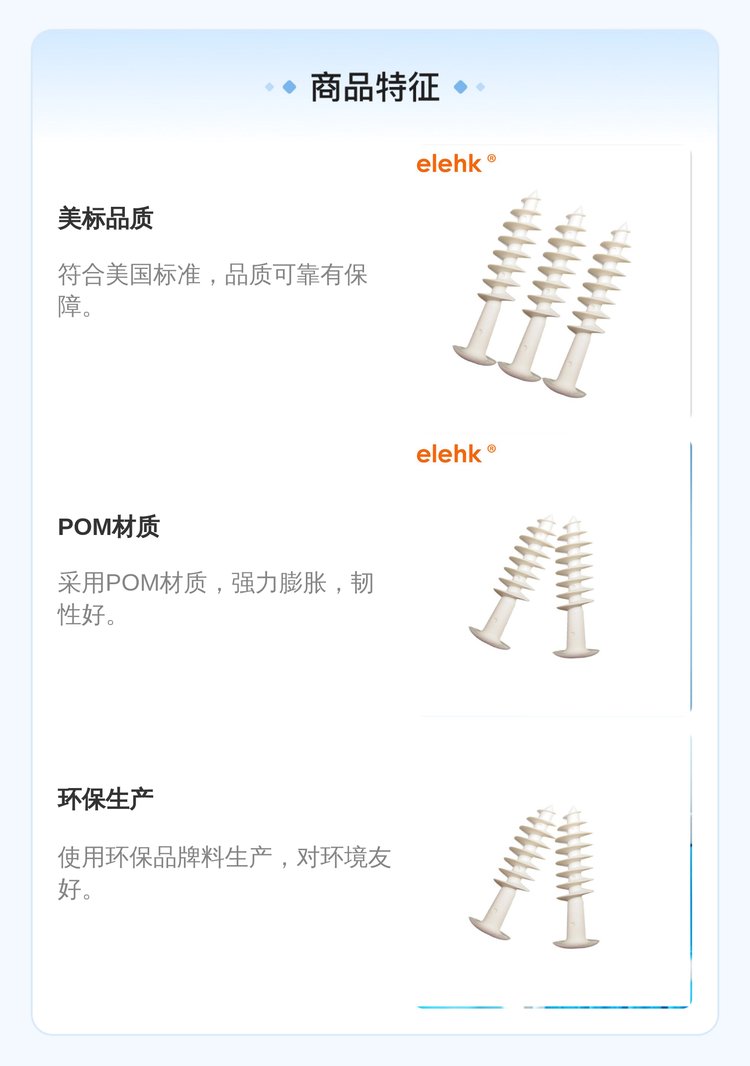 elehk/爱利科美标膨胀螺栓CN5091A 尼龙/POM材质 强力膨胀韧性好 品牌 | elehk/爱利科 | ||