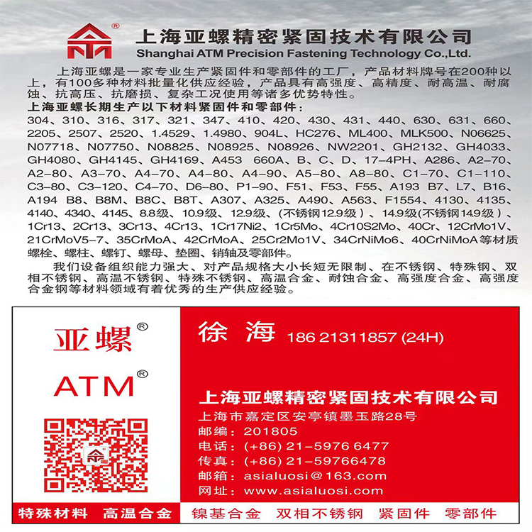 功能用途 | 汽车工业,核电工业耐高温高强度紧固件 | ||