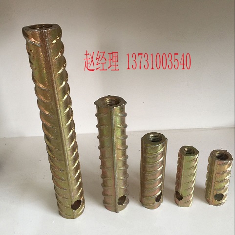 钢筋连接套筒在当今应用是很多的,在链接技术方面也是有很多要求的,多年来我们对此产品也是有很多的研究,下面给大家讲解一下技术方面的工作.螺纹配合精度按GB197规定,钢筋套筒内螺纹6H级,丝头螺纹7g级,牙型表面粗糙度按GB/T1031的规定,Ra值为6.3um,其余加工部位表面粗糙度Ra值为12.5um。表面进行了防绣处理,无锈蚀、油污、裂纹、黑皮等缺陷。两端螺孔加塑料保护塞。