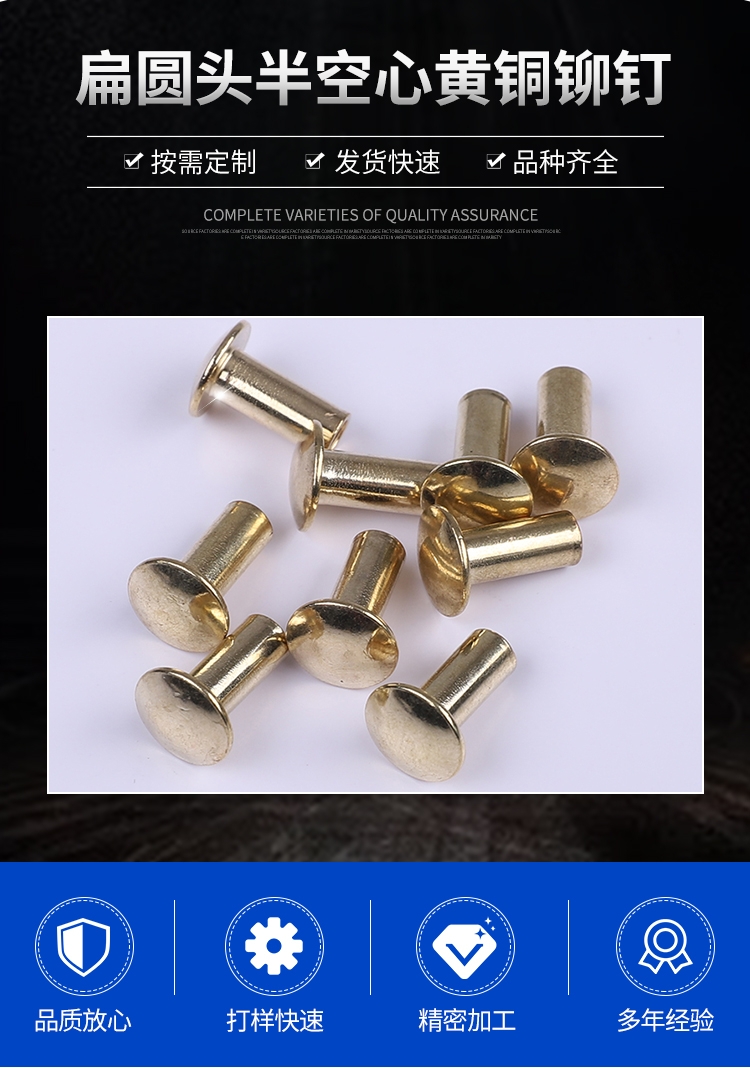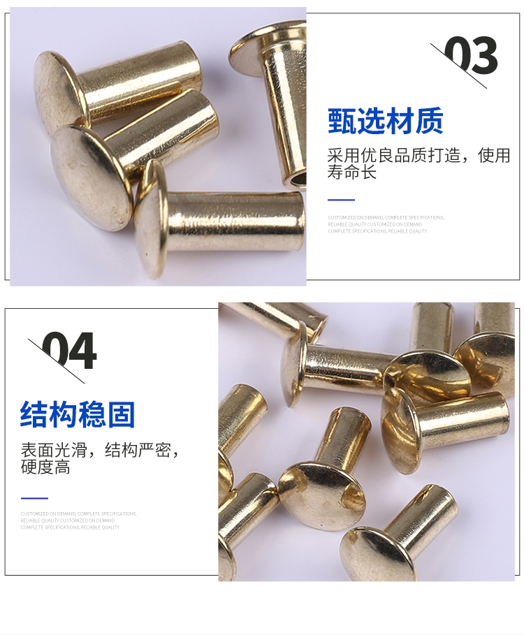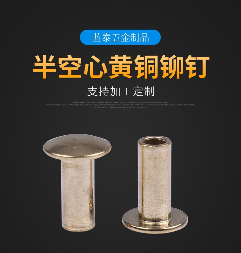 扁圆头半空心铜铆钉 半空心铜铆钉GB873铜铆钉 半空心黄铜铆钉