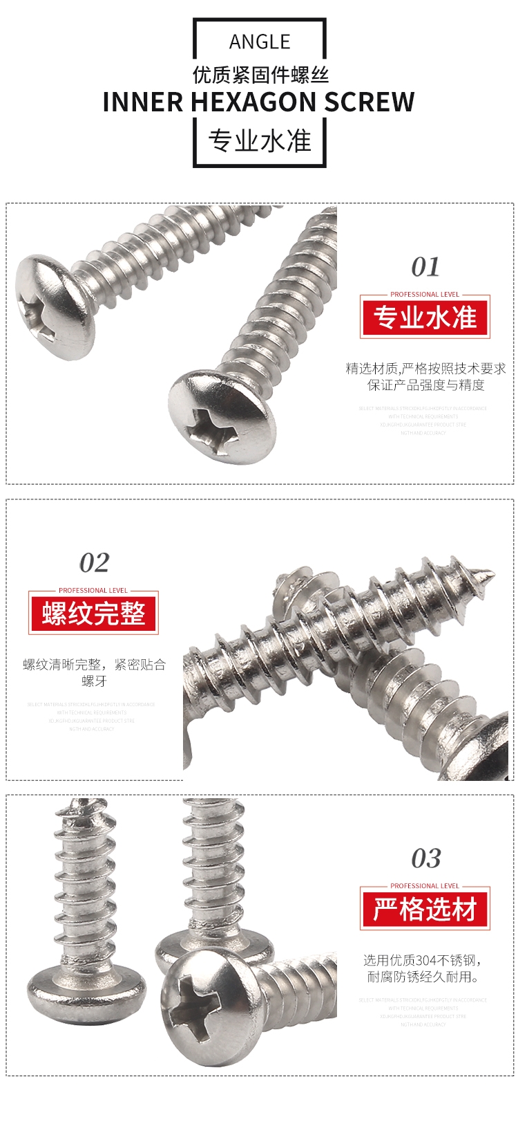 厂家现货304不锈钢自攻螺钉制造十字圆头自攻螺丝制造PA 十字盘头自攻螺丝?不锈钢螺丝厂 YB845 |