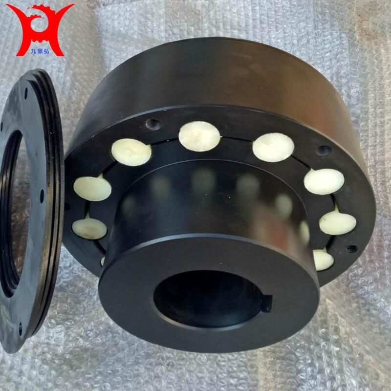 弹性柱销联轴器是利用若干非金属弹性材料制成的柱销,置于两半联轴器凸缘孔中,通过柱销实现两半联轴器联接,该联轴器结构简单,容易制造,装拆更换弹性元件比较方便,不用移动两联轴器。弹性元件(柱销)的材料一般选用尼龙6,有微量补偿两轴线偏移能力,弹性件工作时受剪切,工作可靠性极差,仅适用于要求很低的中速传动轴系,不适用于作可靠性要求较高的工况,例如起重机械的提升机构的传动轴系绝对不能选用,不宜用于低速承重及具有强烈冲击和振动较大的传动轴系,对于径向和角向偏移较大的工况以及安装精度较低的传动轴系亦不应选用,属淘汰品种。 弹性柱销联轴器 轴中的柱销在工作时处于剪切和挤压状态,其强度条件就是计算弹性柱销横截面上的剪切强度和柱销与销孔壁的挤压强度。