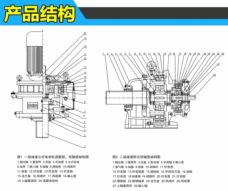 做为驱动或减速装置。其独特的平稳结构在许多情况下可替代普通 圆柱齿轮减速机及 蜗轮蜗杆减速机,