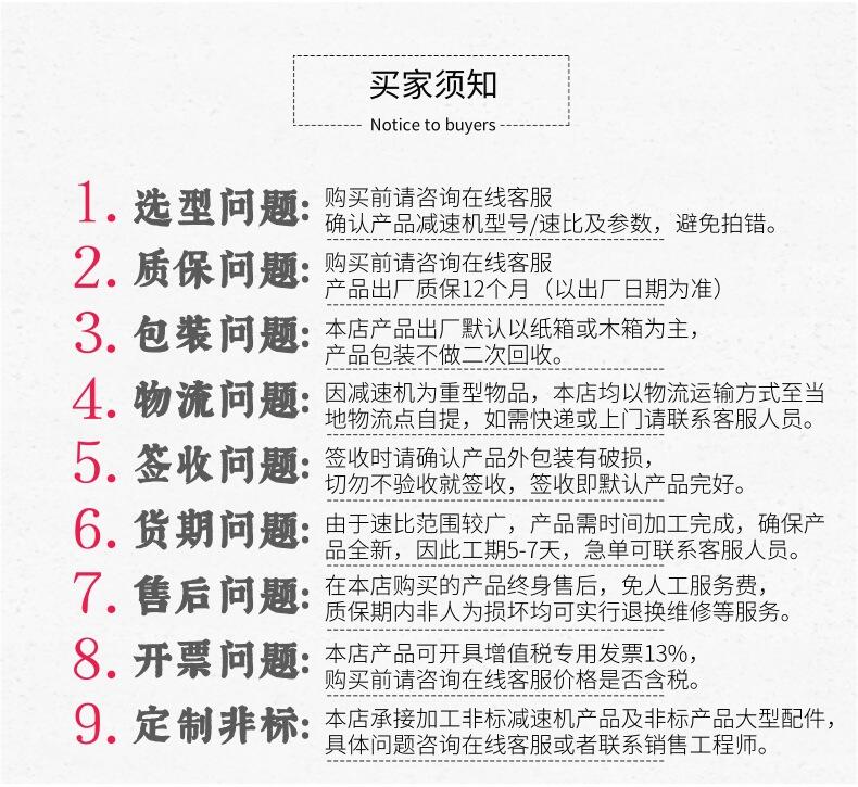 3、 请按照减速机使用守则,标准的工作环境的温度是-5度到10度,如果超过这个额定数值时,请注意。