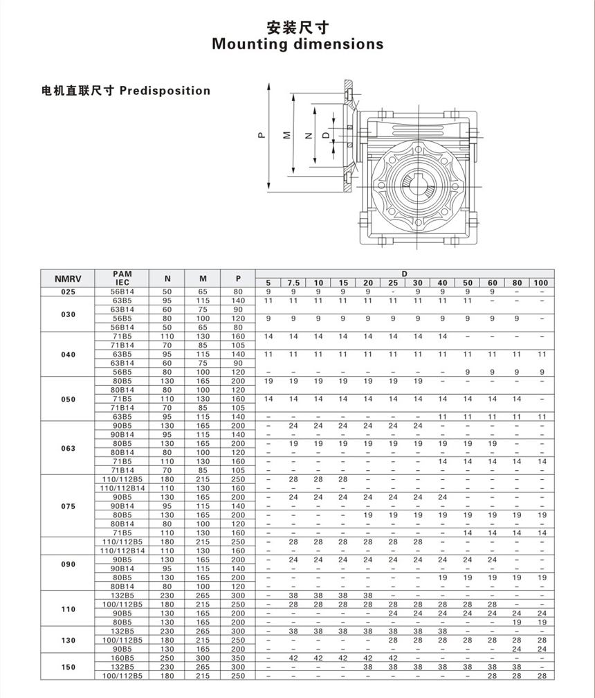 NMRV25、 NMRV30、 NMRV40、 NMRV50、 NMRV63、 NMRV75、 NMRV90、 NMRV110、 NMRV130  NMRV150