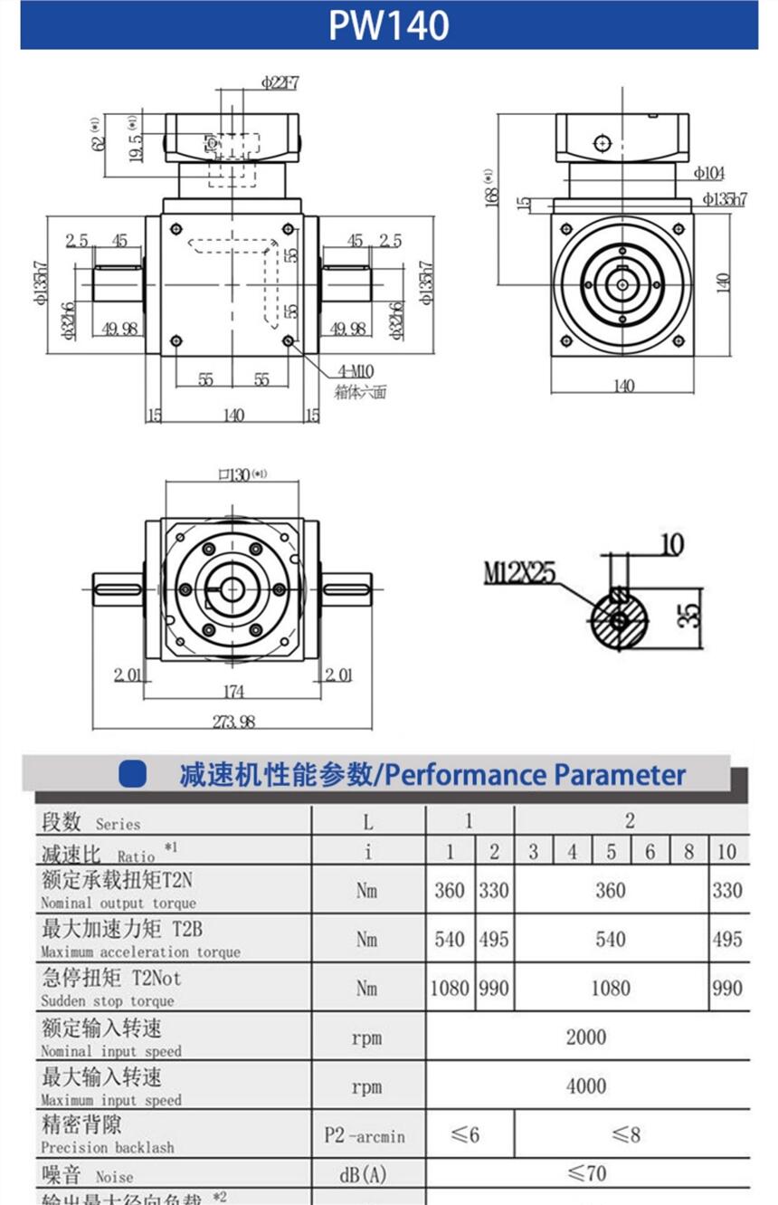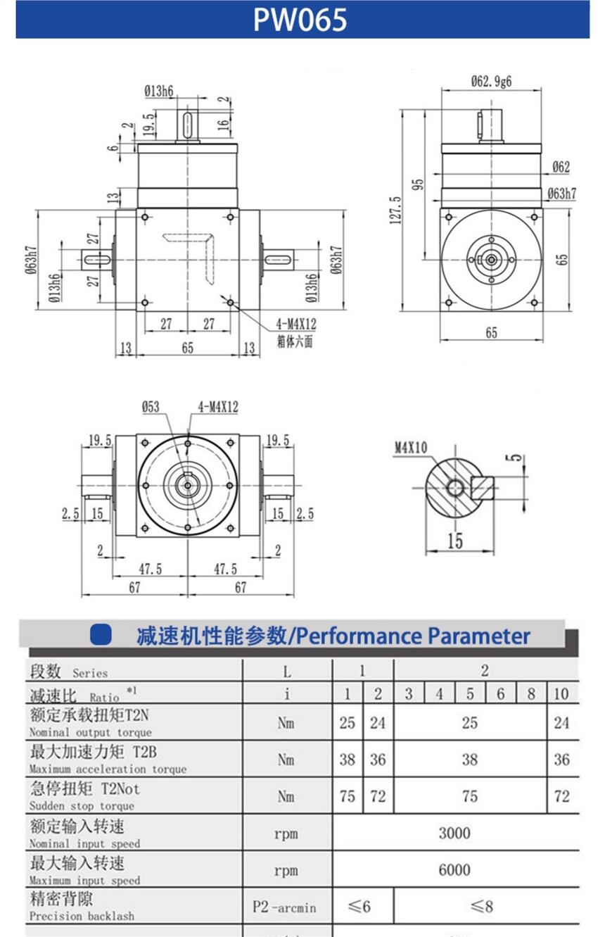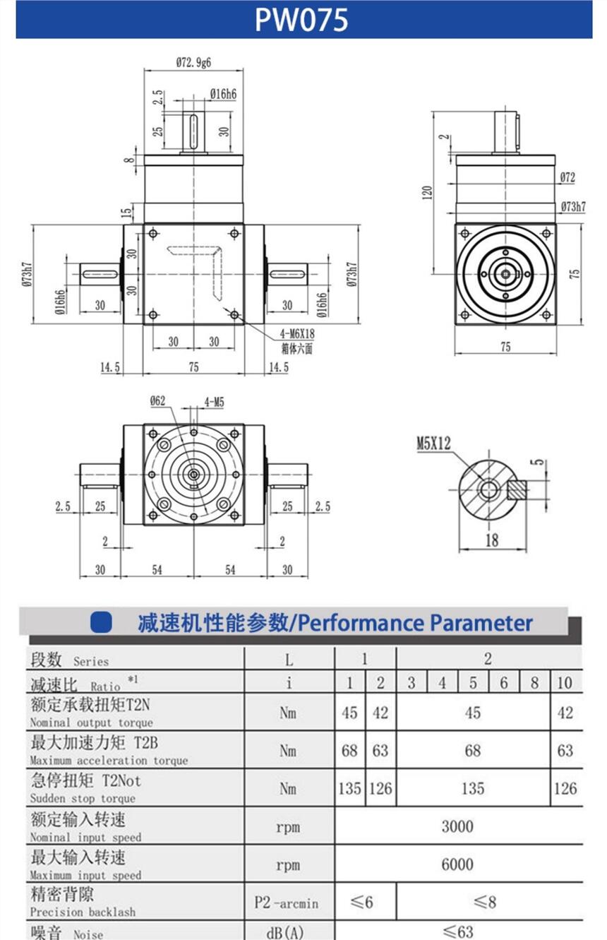 精密直角90度转换向器单双轴孔输出伺服行星减速机PW065/075/090