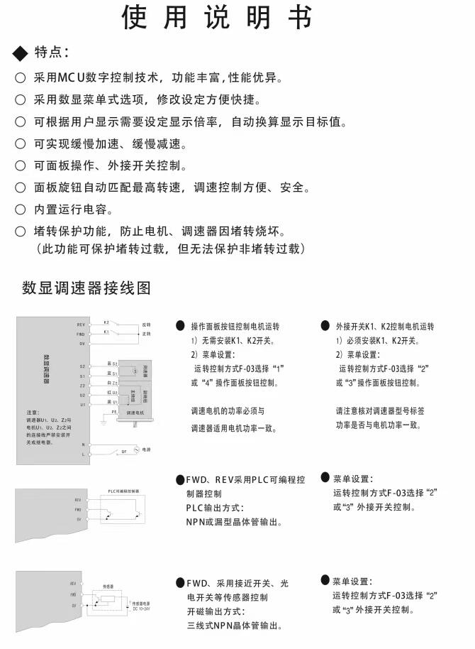 调速电机调速器 智能数显 正反转三挡 内置型 485 PLC可编程