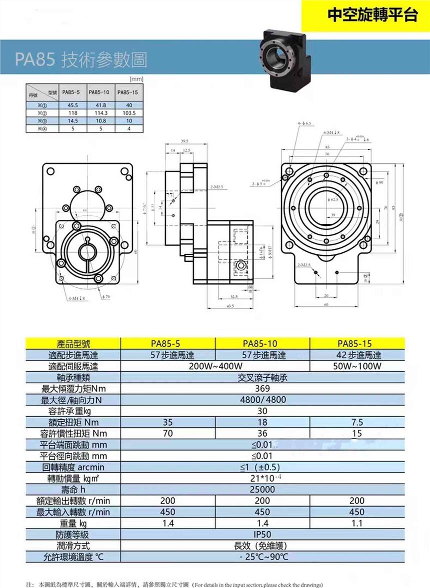 精密步进伺服电机中空旋转平台PA60 85 130 200 凸轮分割器DD马达