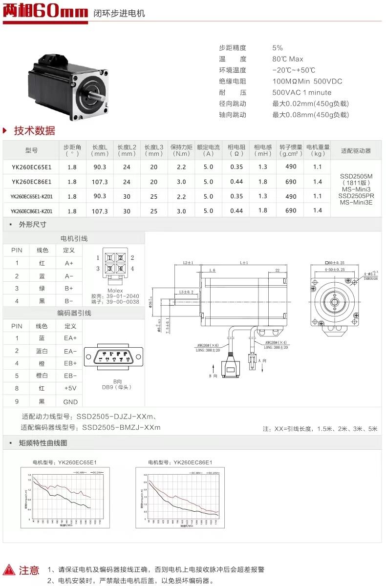 YAKO研控60mm两相闭环步进电机 YK260EC65E1 YK260EC86E1