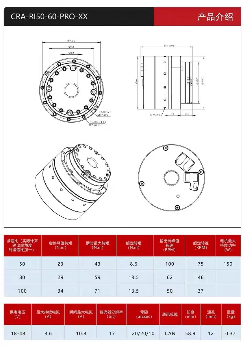 机器人关节模组协作机械手臂 谐波减速器伺服电机编码驱动一体CAN