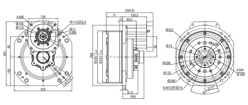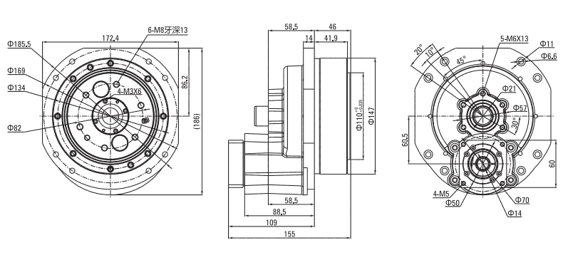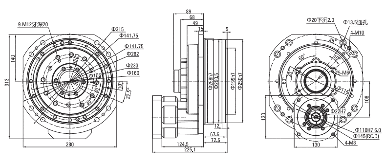 中空旋转平台RCA带法兰摆线针轮RV减速机器人机械手