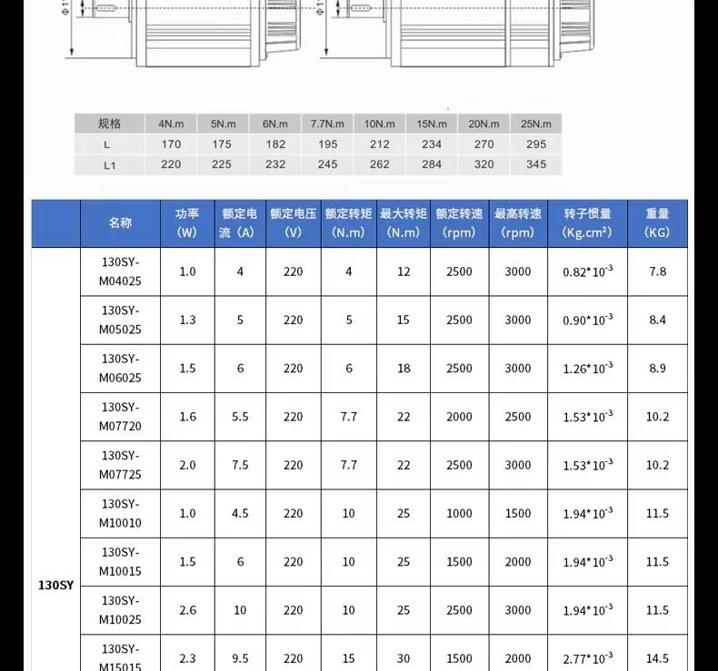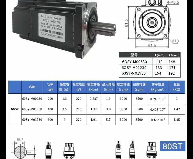 130法兰交流伺服电机驱动器套装130ST-M05025 5牛米