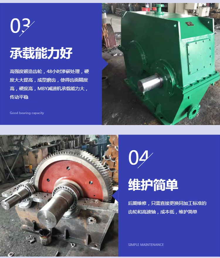 1、硬齿面齿轮减速器传动效率高:单级达96.5%,双级大于93%,三级四级大于90%