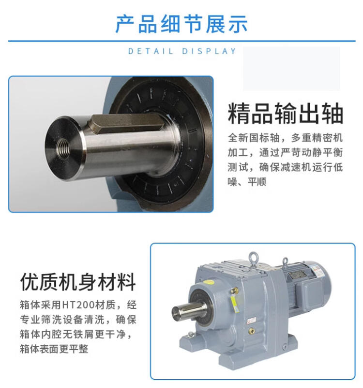 R系列是最直接的减速机,它的官方全称是同轴齿轮减速机。同轴减速机最大的优点便是安装便捷,适应性强,可靠耐用,承受过载能力高。而目看型号的数字字母组合就能看出R系列齿轮减速机的指数。我们对R系列齿轮减速机的型号命名有一个规律,就是基本型式+数字型号+减速比+电机型号 (机座号) +电机极数+安装方位。