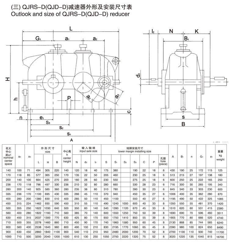 QJRS-D560起重机用中硬齿面齿轮减速机 为三级传送,是在QJR减速机基础上增加了一级,在水平面下方增加一级,增大了传动比,体积变化不大。适用于运输冶金,矿山,化工,钢厂,船厂,煤炭矿山,港口等的起重提升运输设备中,传动效率高,耐冲击。