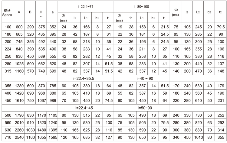 ZSY560硬齿面减速机是平行轴系列,是按照标准JB/T8853-2001生产,平行轴减速器是按标准 (JB/T8853—2001)生产,产品经优化设计。它主要包括ZDY(单级)、ZLY(两级)、ZSY(三级)和ZFY(四级)四大系列,垂直轴减速器是按标准(JB/T9002—1999)生产.用于输入轴与输出轴呈垂直方向布置的传动装置.它主要包括DBY、DCY和DFY三大系列。ZSY560-80-I煤炭加工机械用硬齿面齿轮减速机三级传送,可正反运转,当需要单向运转时,可通过加装逆止器实现。型号中注明旋转方向N或S。