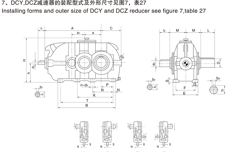 DCY齿轮减速机为三级传动减速器,输入轴输入齿轮为锥齿伞齿弧齿,两者相互咬合传动,高速级传动为格里森制弧齿锥齿轮,后两级别传动则为渐开线圆柱斜齿轮,产品承载能力强,体积小,噪声低,适用于入轴、出轴成直角布置的机械传动中。齿轮经渗碳.淬火.磨齿工艺制造,6级精度,硬度可达HRC54-62。主要用于运输机械、冶金、矿山、化工、煤炭、建材、轻工、石油等各种通用机械。