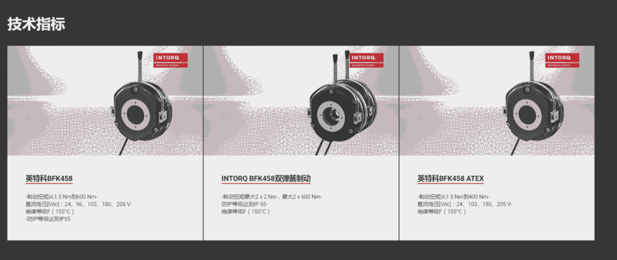 多样的模块化系统 INTORQ BFK 458模块化系统是我们产品能满足多种技术要求的基础。弹簧加压制动器 INTORQ BFK 458 作为标准系列,得到广泛的应用。与此同时,其模块化设计可以满足不同的特殊需求。富于变化是本款产品系列的显著特点。产品性能