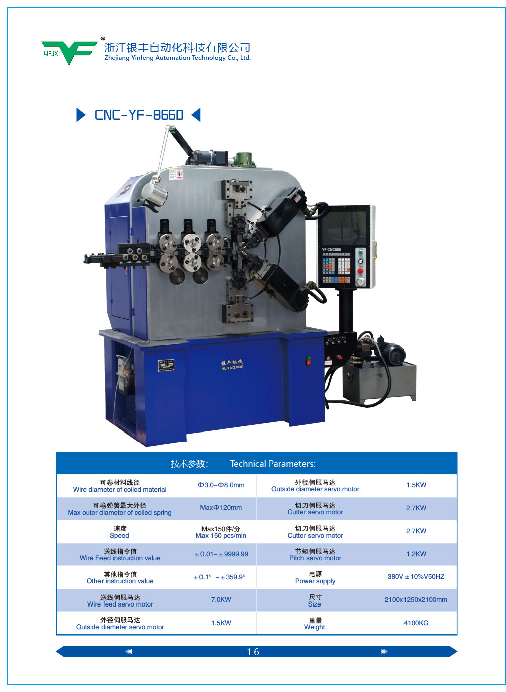 供应全自动6轴无凸轮压簧机银丰YF-8660数控压簧成型设备