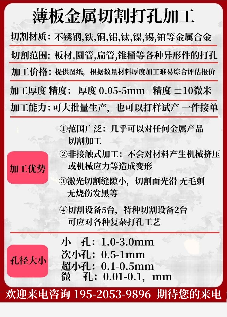 加工种类 | 激光小孔加工,狭缝加工 | ||