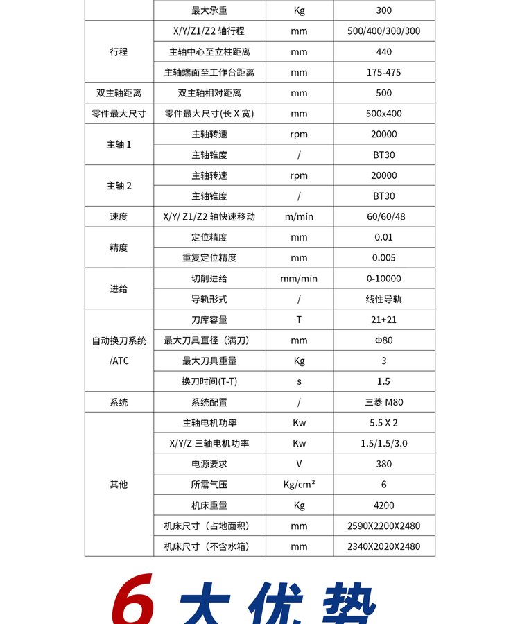 X\/Y\/Z1\/Z2轴行程 | 500\/400\/300\/300mm | ||
