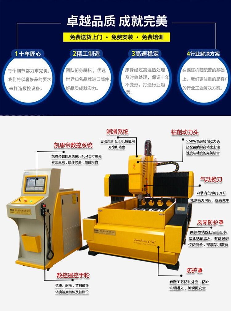 1、机床主要由床身、工作台、龙门、动力头、数控系统、冷却系统等部分组成。龙门数控钻床机床采用床身工作台固定,龙门移动的形式。